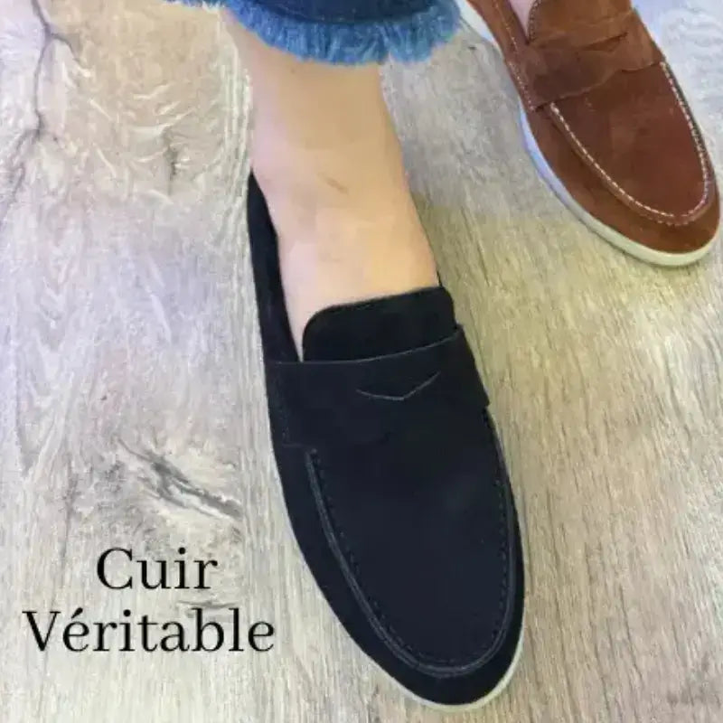 Mocassins Femme en Daim Véritable - Noir